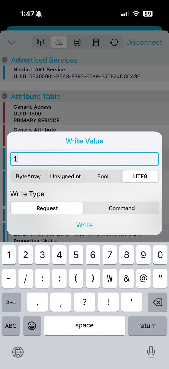 위와 같은 창이 뜨는데, 여기서 숫자 0또는 1을 보낼 것이므로 UTF8 에서 1을 보내보면?